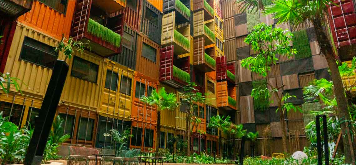 With its modern industrial concept, Qubika Boutique Hotel was build with a container base. Structure, combined with a green modern interior. Qubika Boutique Hotel has become the new urban destination for vacation, business trips, and events.